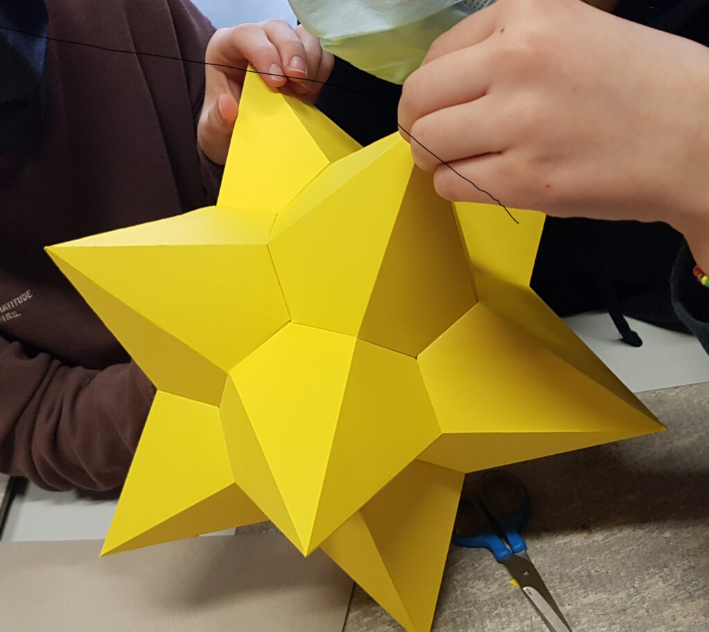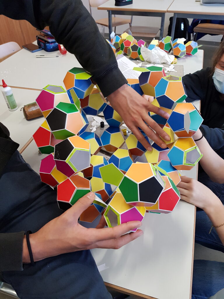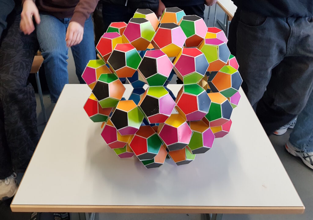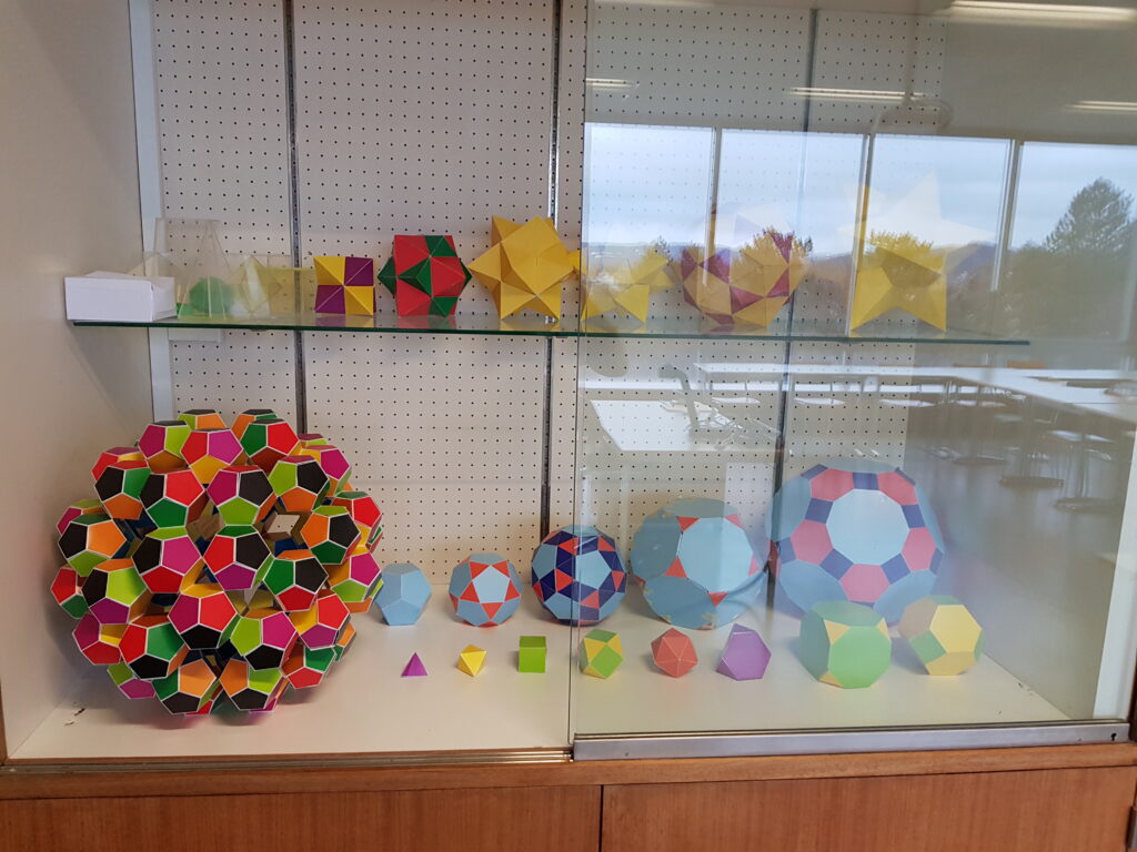 Halbes Dodekaeder, Dodekaeder, Stern und Vitrine mit Körpern: