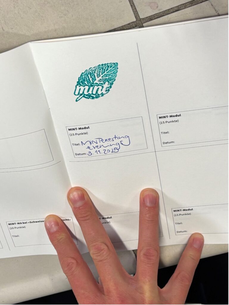 Neu bietet die Abteilung MN das MINT-Diplom an. Im Testatheft sammeln die Schüler*innen ab Jahrgang 26M MINT-Punkte für ihre MINT-Aktivitäten. Wenn sie 100 Punkte oder mehr erreichen, erhalten sie ihr MINT-Diplom an der Maturafeier. Die beste MINT-Matura zeichnen wir mit dem MINT-Preis aus.